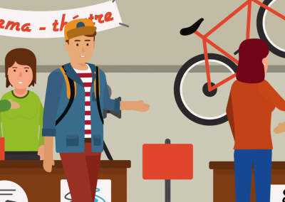 Nous avons cette fois eu l’occasion de travailler avec l’équipe du service orientation et insertion du professionnel qui organise cette journée pour l’Université Grenoble Alpes. L’objectif avec cette vidéo en motion design était double : essayé de changer la perception que les lycéens peuvent avoir de cette journée, mais aussi promouvoir l’application qui a été spécialement dévelopée à cette occasion. Ainsi, nous avons fait le choix de mettre en scène un personnage qui lors de cette journée nous amène à visiter le campus et y découvrir la variété des temps forts qui seront proposés à cette occasion. La réflexion s’est essentiellement portée sur comment rendre ce personnage “vivant et cool” et cela s’est traduit à la fois dans son apparence, dans sa façon familière de parler et dans le rapport qu’il entretient avec le spectateur tout au long de la vidéo. Un travail singulier a été fait sur l’univers sonore afin de le rendre vivant et cohérent avec le personnage et les lieux par lesquels il passe au fur et à mesure. Les choix musicaux ont également été plus orienté vers les “tendances” actuels pour le public de cette tranche d’âge.